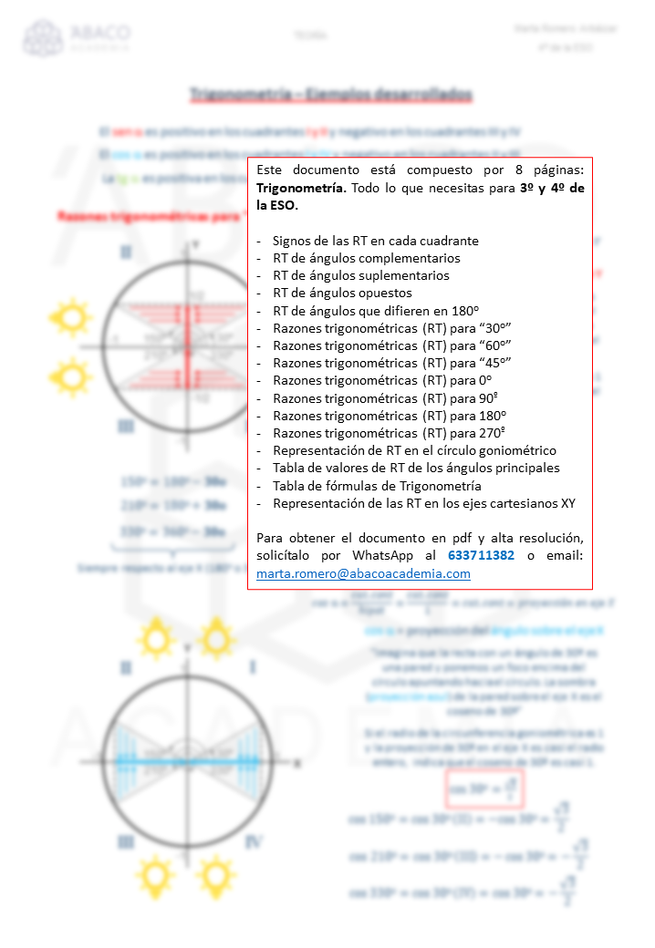 ¿Quieres tener la teoría, sus resúmenes o los problemas que te preguntarán en el examen? solicítanoslo.Paga por Bizum y te enviaremos el documento pdf en alta calidad al email que nos proporciones. Vectores VECTORESResumen 10€ 5/5 (1) VECTORESTeoría 15€ 5/5 (1) VECTORESEjercicios para practicar Empezando por muy sencillosEjercicios de exámenes incluidos 5€ 5/5 (1) VECTORESSoluciones de ejercicios 15€ 5/5 (1) TRIGONOMETRÍAResumen 10€ 5/5 TRIGONOMETRÍATeoría 15€ 5/5 (1) (1) TRIGONOMETRÍAEjercicios para practicar Empezando por muy sencillosEjercicios de exámenes incluidos 15€ 5/5 (1) TRIGONOMETRÍASoluciones de ejercicios 15€ 5/5 (1)